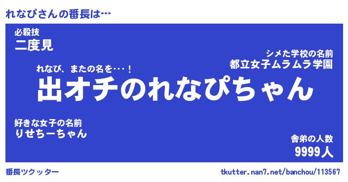 | 2回繰り返すあだ名 | 『れなれな』『れれなな』『ぬるぬる』 |