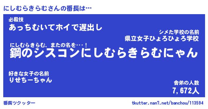 | ポケモン風あだ名 | 『ニシチュウ』『ニシムダネ』 |