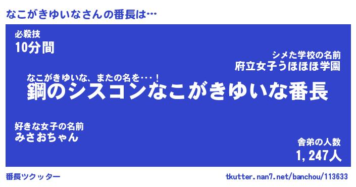 | 恥ずかしいあだ名 | 『プリティーなこがきゆいな』『なこちん』 |