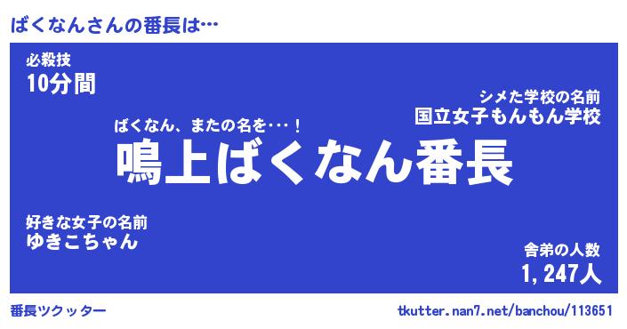 | 意味不明あだ名 | 『ペロリンばくなん』『永久保存ばくなん』 |
