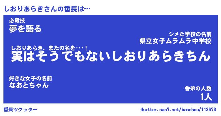 | ヒーロー風カッコイイあだ名 | 『スーパーシオリアラキ』『銀牙騎士シオ』 |