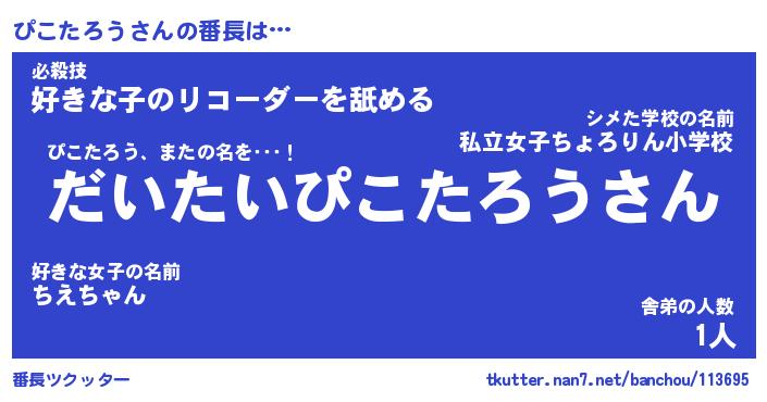 | 肩書あだ名 | 『ぴこたろう社長』『ぴこたろう国家主席』 |