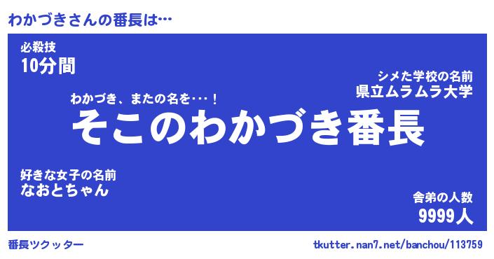| ヒーロー風カッコイイあだ名 | 『スーパーワカヅキ』『暗黒騎士ワカ』 |