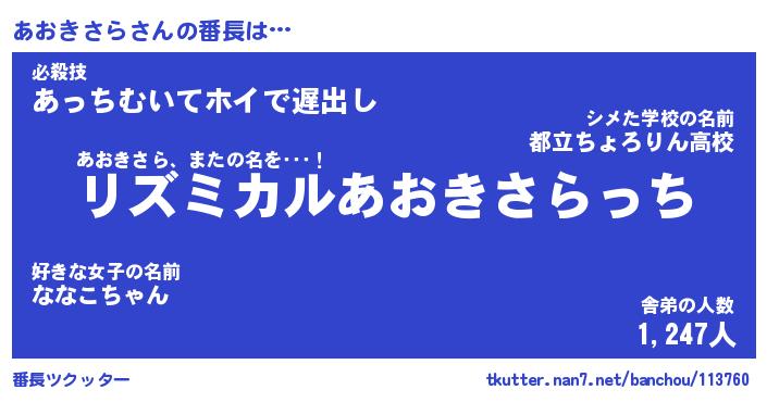 | ヒーロー風カッコイイあだ名 | 『スーパーアオキサラ』『銀牙騎士アオ』 |