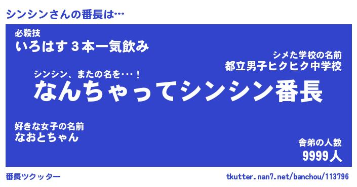 | ヒーロー風カッコイイあだ名 | 『スーパーシンシン』『銀牙騎士シン』 |
