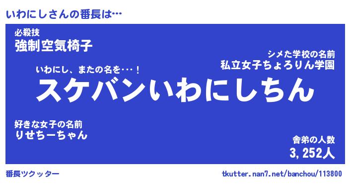 | ヒーロー風カッコイイあだ名 | 『スーパーイワニシ』『幻影騎士イワ』 |