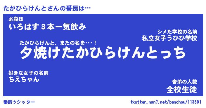 | 肩書あだ名 | 『たかひらけんと御曹司』 |