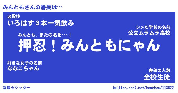 | 意味不明あだ名 | 『ペロリンみんとも』『永久保存みんとも』 |