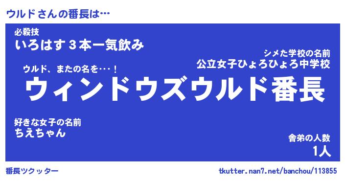 | ポケモン風あだ名 | 『ウルチュウ』『ウルドダネ』 |