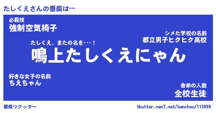 | ピコ太郎風あだ名 | 『タコ史郎』『ピタ十郎』『タシ二郎』 |