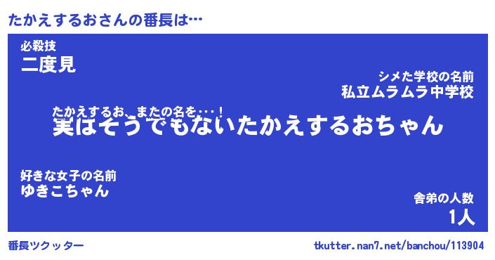 | 伝説のあだ名 | 『封印されしスナイパーたかえするお』 |