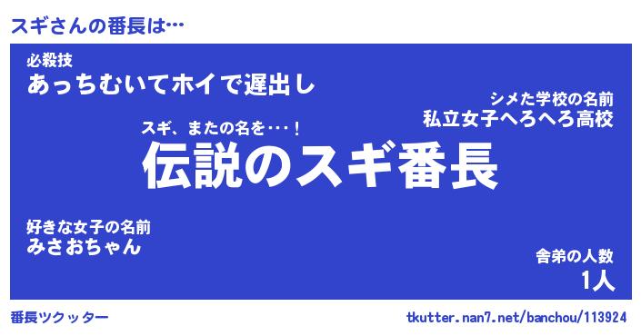 | 2回繰り返すあだ名 | 『スギスギ』『ススギギ』『ぐんぐん』 |