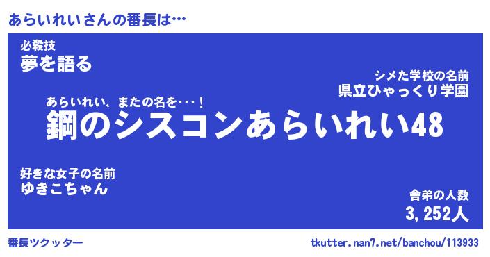 | 伝説のあだ名 | 『封印されしスナイパーあらいれい』 |