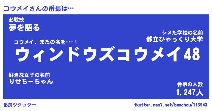| ファンタジー風あだ名 | 『コウフェル』『エターナルコウメイー』 |