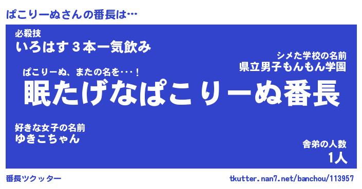 | 伝説のあだ名 | 『封印されしスナイパーぱこりーぬ』 |