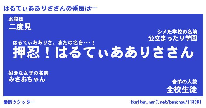 | 2回繰り返すあだ名 | 『はるはる』『ははるる』『うるうる』 |