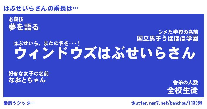| ファンタジー風あだ名 | 『ハブフェル』『エターナルハブセイラー』 |