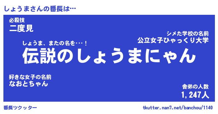 | 伝説のあだ名 | 『伝説のスナイパーしょうま』 |