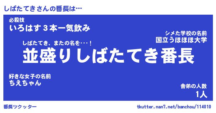 | ファンタジー風あだ名 | 『シバフェル』『エターナルシバタテキー』 |
