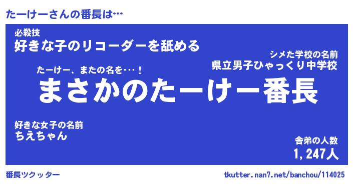 | 伝説のあだ名 | 『伝説のスナイパーたーけー』 |