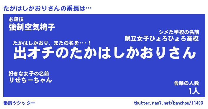 | 男性向けラノベタイトル風あだ名 | 『たかはしかおりの憂鬱』 |
