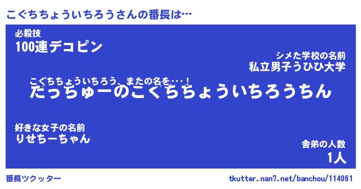 | 伝説のあだ名 | 『伝説のスナイパーこぐちちょういちろう』 |