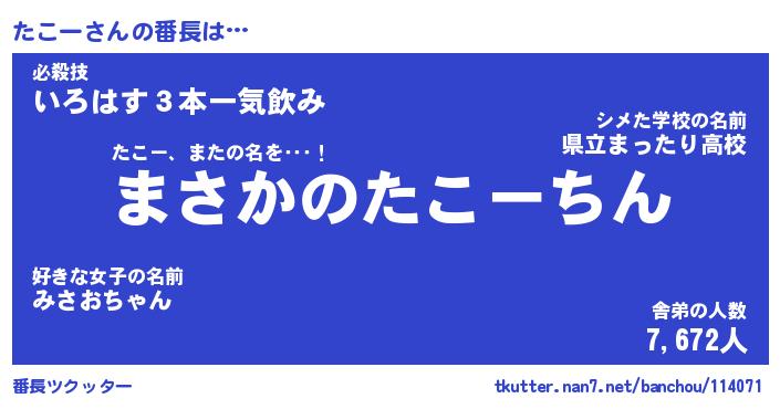 | 伝説のあだ名 | 『伝説のスナイパーたこー』 |