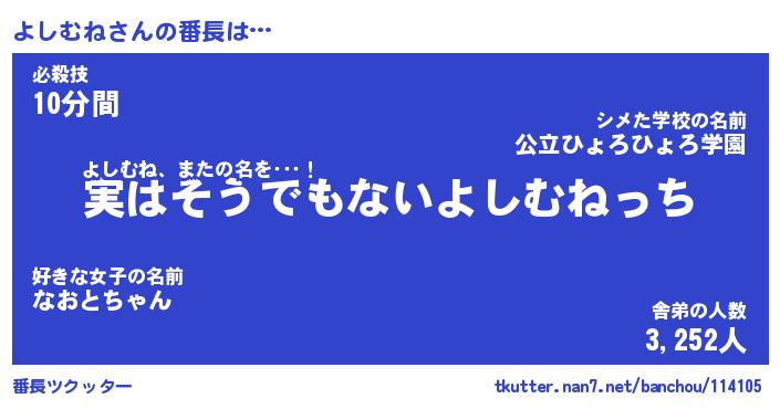 | 肩書あだ名 | 『よしむね御曹司』『よしむね大統領』 |