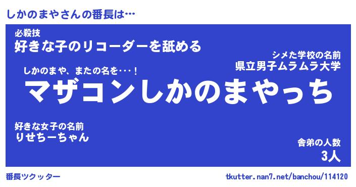 | 伝説のあだ名 | 『封印されしスナイパーしかのまや』 |