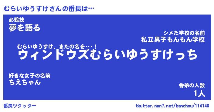 | 男性向けラノベタイトル風あだ名 | 『むらいゆうすけの憂鬱』 |