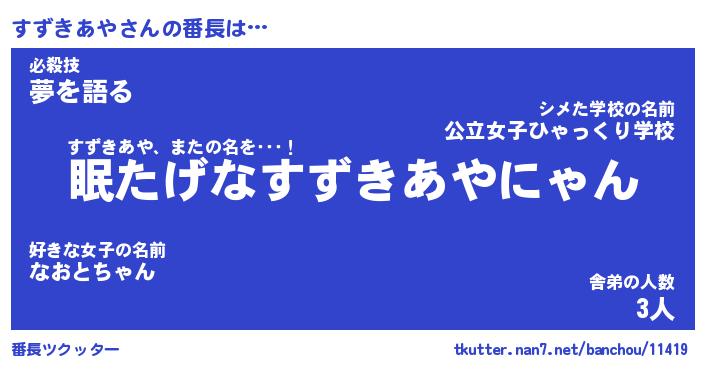 | ファンタジー風あだ名 | 『スズフェル』『エターナルスズキアヤー』 |