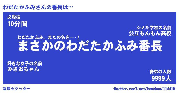 | 肩書あだ名 | 『わだたかふみ御曹司』 |