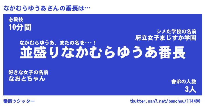 | 男性向けラノベタイトル風あだ名 | 『なかむらゆうあの憂鬱』 |