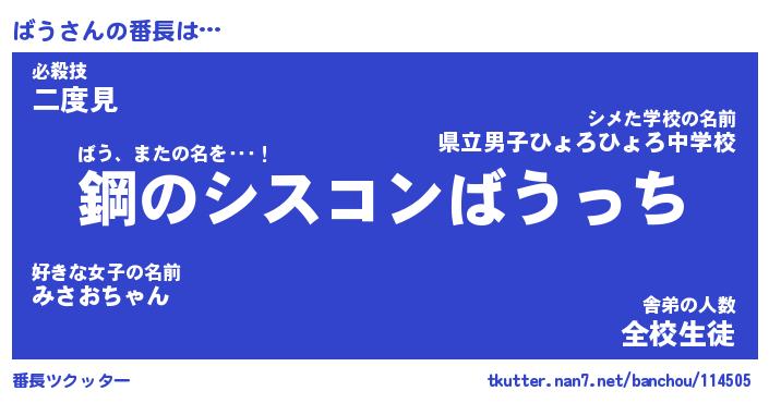 | ヒーロー風カッコイイあだ名 | 『スーパーバウ』『ウルトラばうマン』 |