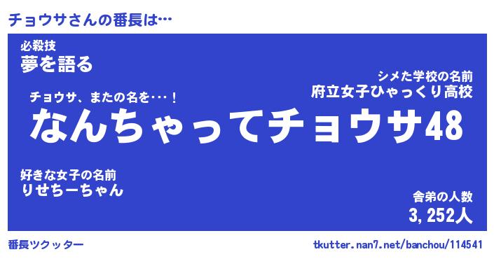| ヒーロー風カッコイイあだ名 | 『スーパーチョウサ』『銀牙騎士チョ』 |