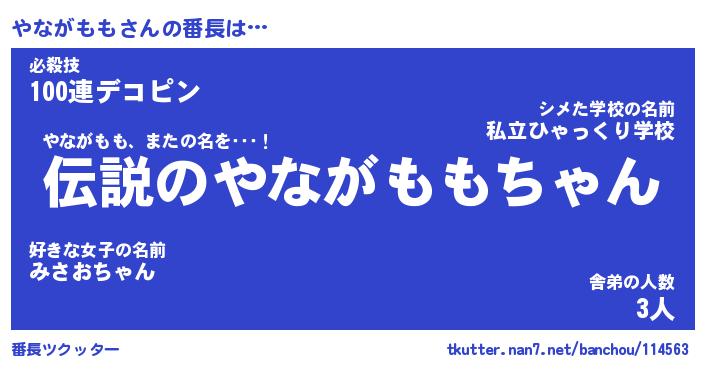 | 伝説のあだ名 | 『伝説のスナイパーやながもも』 |