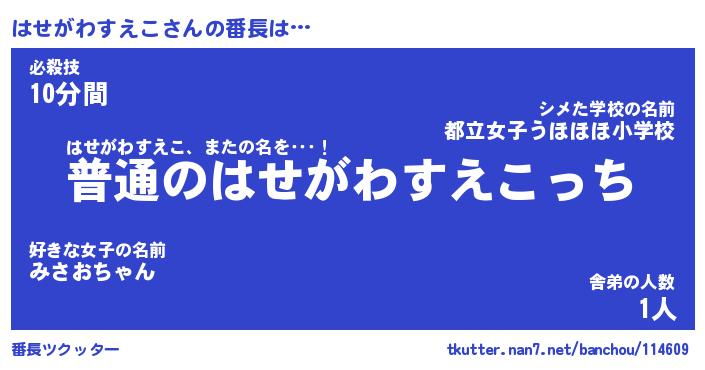 | 2回繰り返すあだ名 | 『はせはせ』『ははせせ』『うろうろ』 |