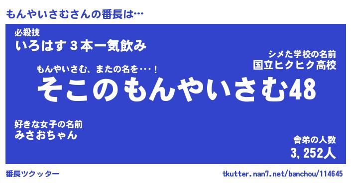 | 男性向けラノベタイトル風あだ名 | 『もんやいさむの憂鬱』 |