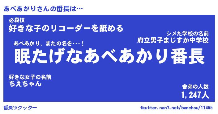 | 伝説のあだ名 | 『封印されしスナイパーあべあかり』 |