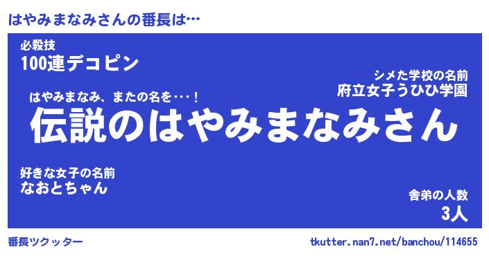 | ピコ太郎風あだ名 | 『ハコ次郎』『ピハ六郎』『ハヤ五郎』 |