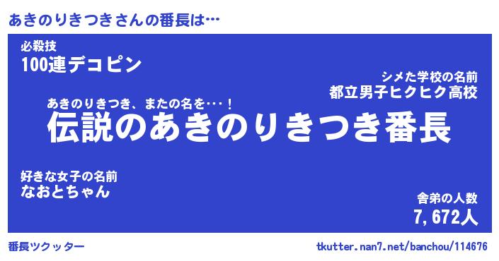 | ヒーロー風カッコイイあだ名 | 『スーパーアキノリキツキ』 |
