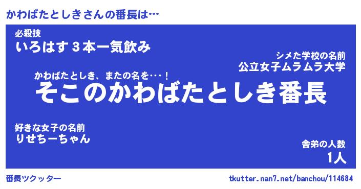 | ヒーロー風カッコイイあだ名 | 『スーパーカワバタトシキ』 |