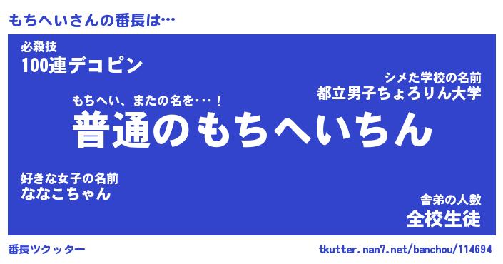 | 男性向けラノベタイトル風あだ名 | 『もちへいの憂鬱』 |