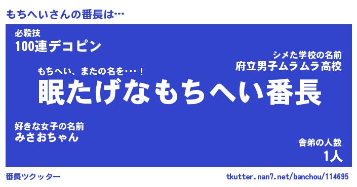 | 伝説のあだ名 | 『封印されしスナイパーもちへい』 |