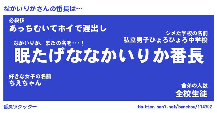 | ヒーロー風カッコイイあだ名 | 『スーパーナカイリカ』『天弓騎士ナカ』 |