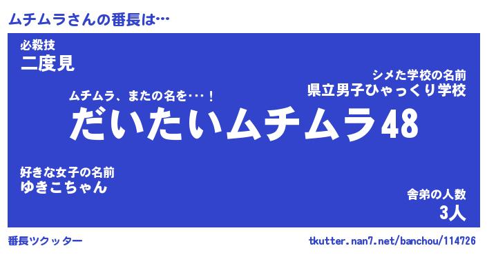 | ヒーロー風カッコイイあだ名 | 『スーパームチムラ』『銀牙騎士ムチ』 |