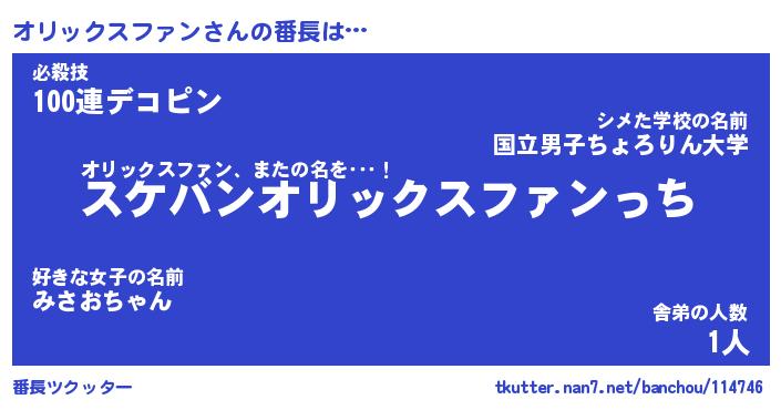 意味不明あだ名 | 『ペロリンオリックスファン』 |