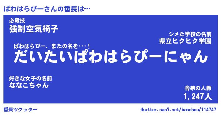 | 肩書あだ名 | 『ぱわはらぴー社長』『ぱわはらぴー班長』 |