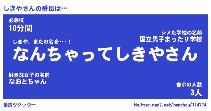 | 意味不明あだ名 | 『ペロリンしきや』『しきやフォーエバー』 |