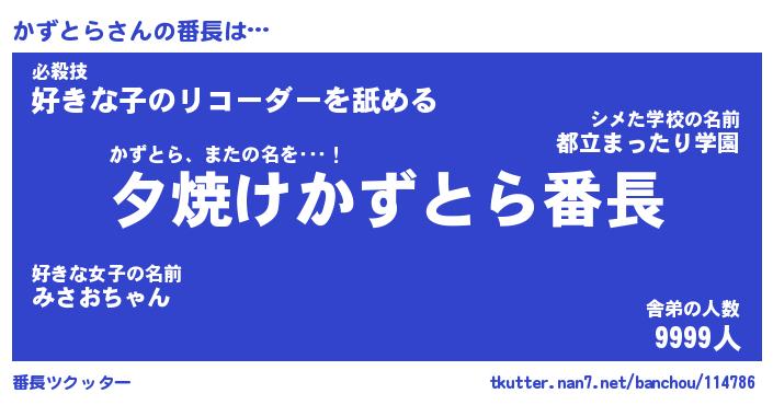 | 意味不明あだ名 | 『ペロリンかずとら』『永久保存かずとら』 |